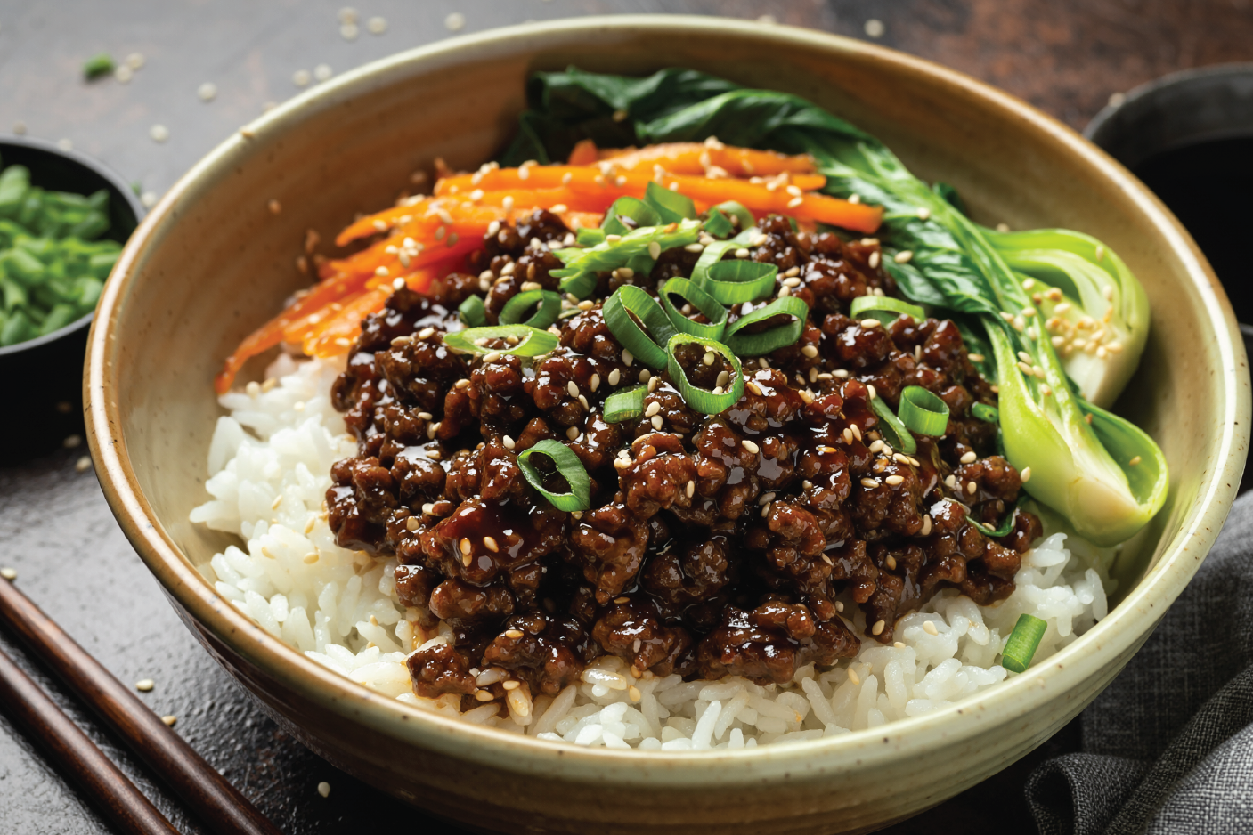 In a saucepan, bring the stock and garlic to a gentle simmer. Add the sliced beef, carrots, and bok-choy, simmer for a couple of minutes until the veg are tender. Cook the noodles separately, until soft. Drain the noodles, and divide between bowls, and ladle over the hot beef broth mixture. Season with soy sauce, sesame oil, salt and pepper.