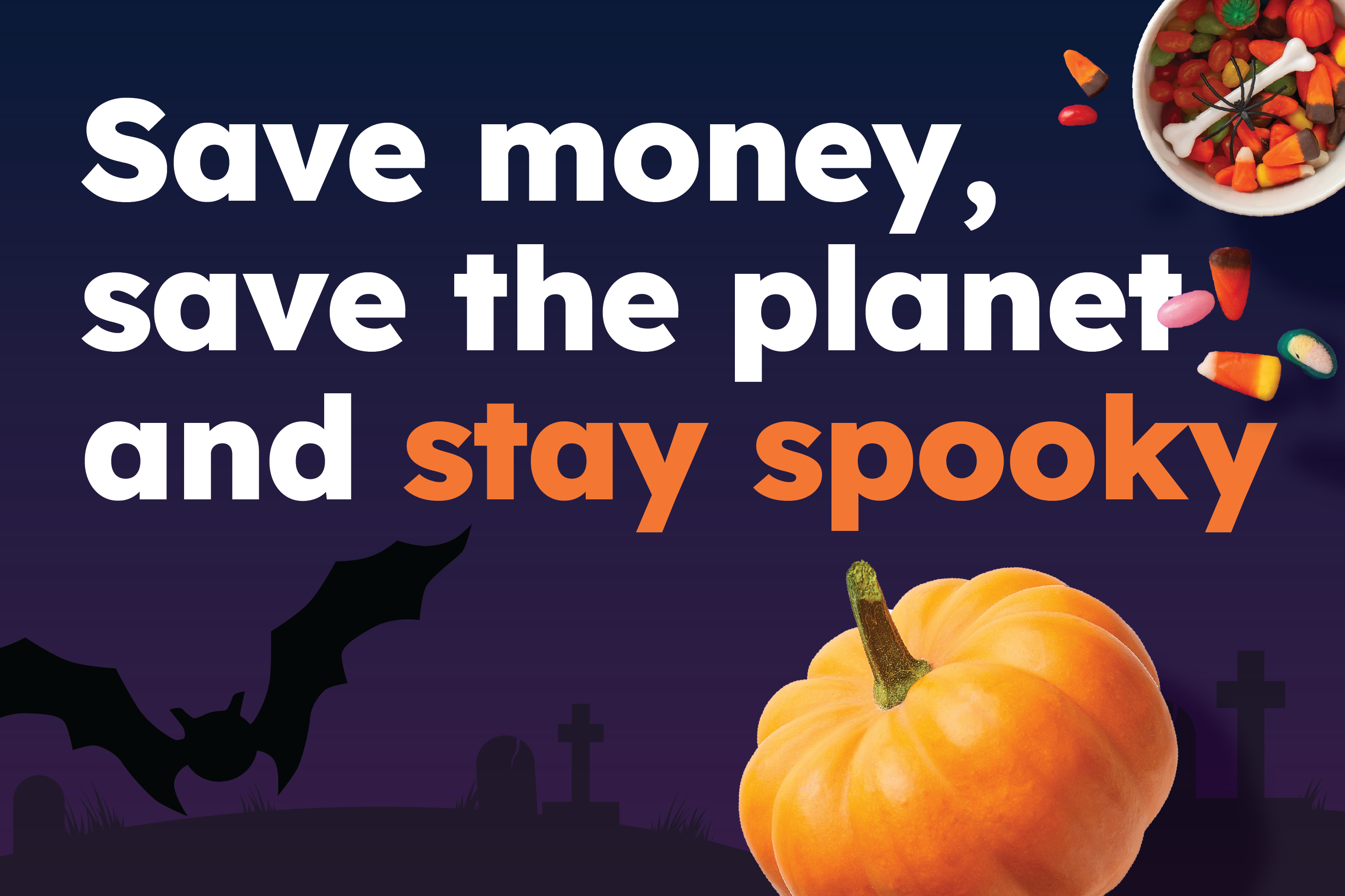 With your Company Shop membership, you’re already reducing the scary amount of stuff that would end up in landfill. We’re not telling you how to have fun at Halloween, we do ask though, that you take a second to think about how much rubbish it brings. If you can, try to reduce it- whether that's recycling more stuff, reusing old costumes, or making your own decorations out of things that would go in the bin.